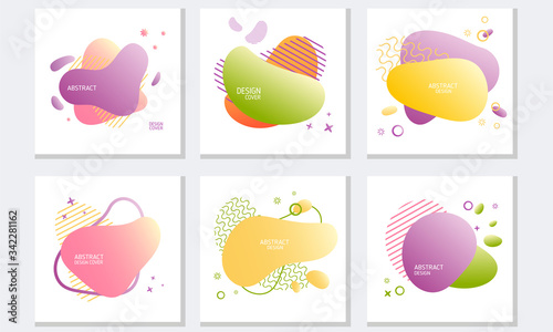 © Happypictures, Fototapeta premium Cards with Abstract Dynamical Colored Forms and Line. Gradient Abstract Banners with Flowing Liquid Shapes Vector Set