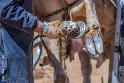 Obraz premium care of cow nail. Cut of worn keratin. Routine cutting activity of cows in farm