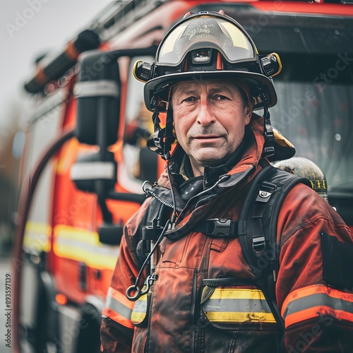 © sarana, Obraz premium Career and Professions A dedicated firefighter