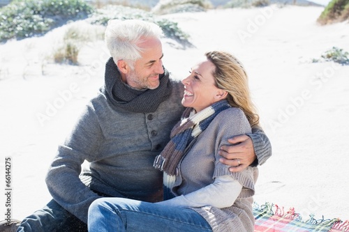 Obraz premium Carefree couple having picnic on the beach