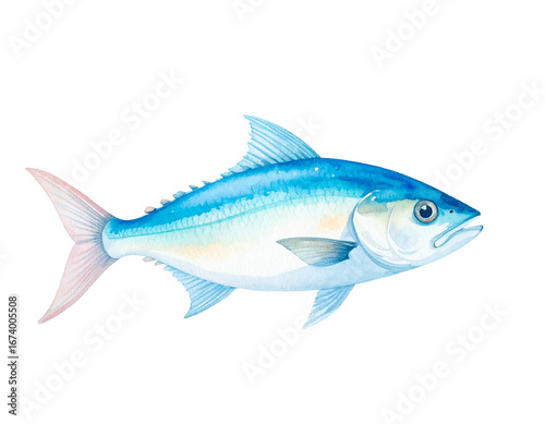 Fototapeta premium Carefully drawn illustration of bluefish. Charming. Delicious. Hand-drawn style. Brush. Seafood. Freshness. Fresh. Market. DHA, EPA. Health. Diet.