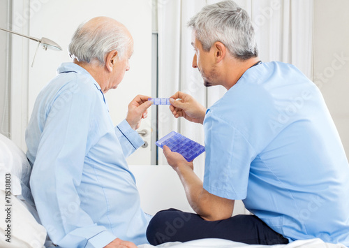 Fototapeta premium Caretaker Guiding Prescription To Senior Man