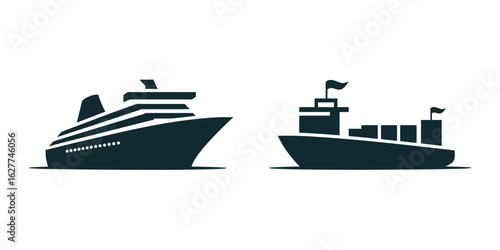 © suraiya, Obraz premium Cargo and Cruise Ships at Port, Maritime Industry Illustration