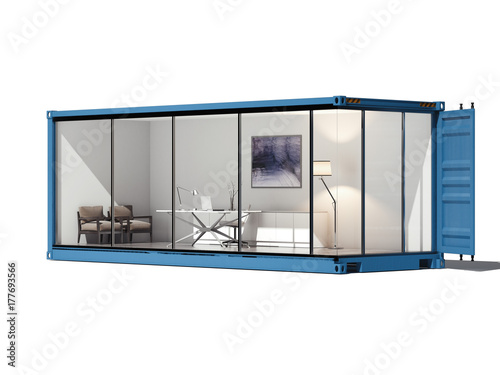 Obraz premium Cargo koneiner converted into an office. 3d rendering