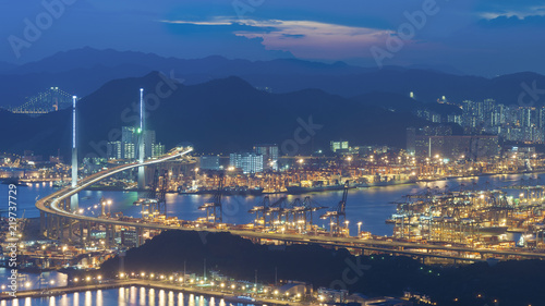 Obraz premium Cargo port and bridge in Hong Kong city