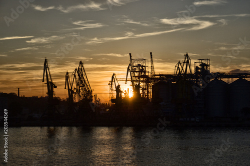 Obraz premium Cargo port at sunset, industry