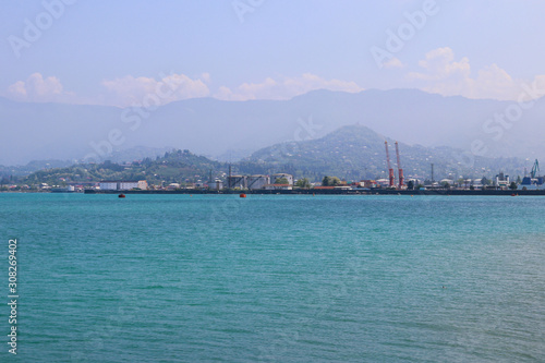 © olyasolodenko, Naklejka premium Cargo port on Black Sea in Batumi, Georgia