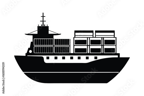 © Mahinur, Obraz premium Cargo ship black silhouette isolated on white background