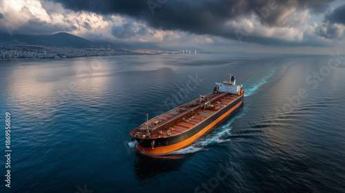 Fototapeta premium Cargo Ship Docked at Industrial Container Port Terminal During Day