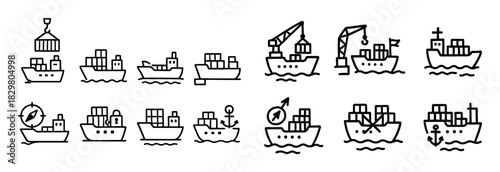 Fototapeta premium Cargo Ship Doodle Icons