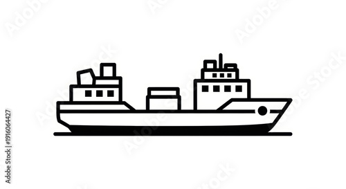 © Yanto, Fototapeta premium Cargo ship icon, container vessel silhouette