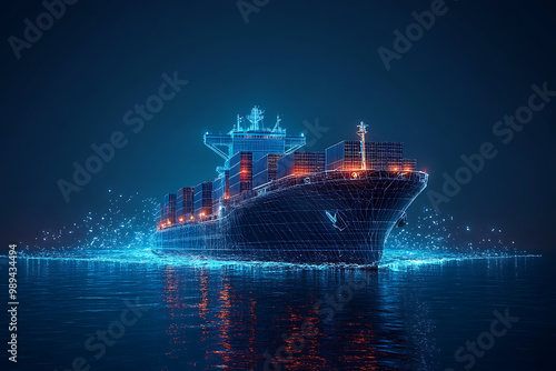 © Evhen Pylypchuk, Obraz premium Cargo Ship it Wireframe plexus style Illustration