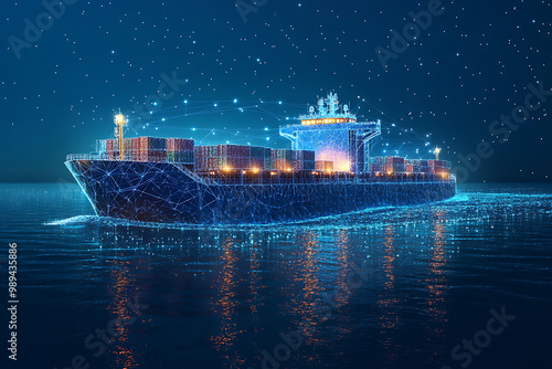 © Evhen Pylypchuk, Obraz premium Cargo Ship it Wireframe plexus style Illustration