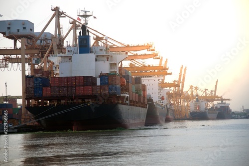 © topten22photo, Fototapeta premium Cargo ship on the port in Thailand.