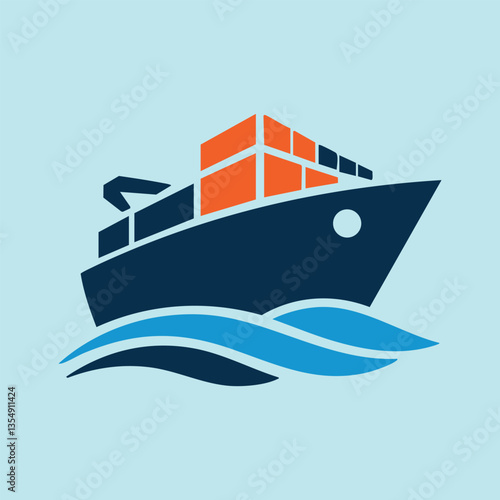 © riiicil, Obraz premium Cargo ship sailing on blue waves