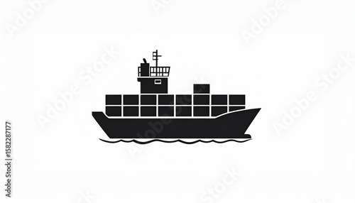 Obraz premium Cargo Ship Silhouette, Minimal Vector