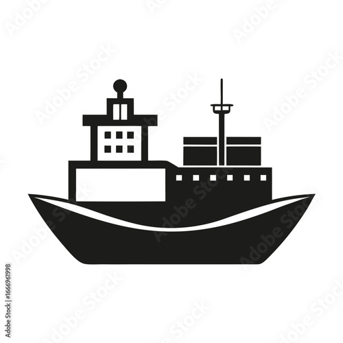 © NOYON HOSSAIN, Obraz premium cargo ship silhouette vector icon on white background