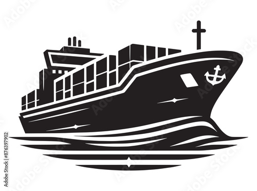 © Md Hasan, Fototapeta premium Cargo ship with containers vector illustration isolated on a white background