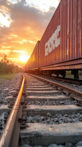 © amorn_m, Obraz premium Cargo Train at Sunset