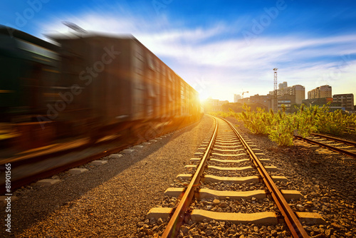 Obraz premium Cargo train platform at sunset with container