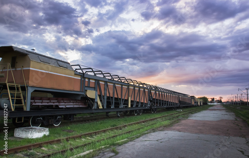 © yarohork, Fototapeta premium Cargo train platform with container