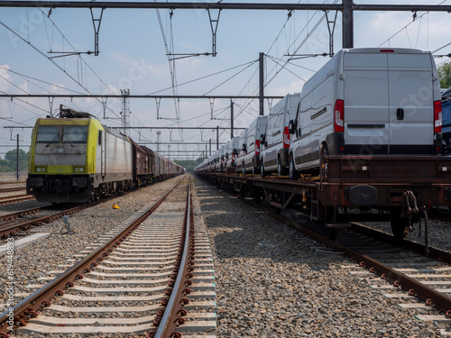© MyStockVideo, Fototapeta premium Cargo train with new cars