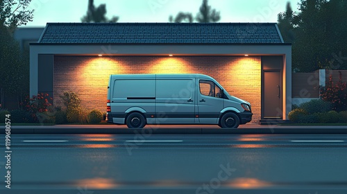 Fototapeta premium Cargo van waiting at logistic center, delivery minivan prepped for route,...