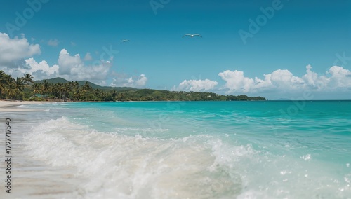 Obraz premium Caribbean ocean waves crashing on the shore, showcasing the natural beauty...