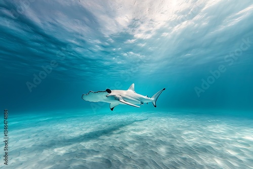 © Sharo, Fototapeta premium Caribbean Reef Shark for Sandy Ocean Floor.