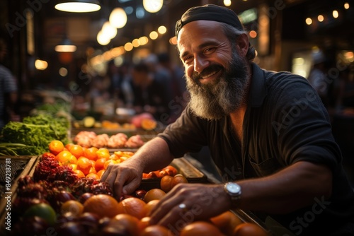 © JONATAS, Obraz premium Carmel de Tel Aviv Market vibrant colors, authentic flavors, pulsating life., generative IA