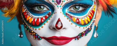 © Jiraporn, Naklejka premium Carnival celebration concept. Vibrant face paint honoring traditions and celebrations of cultural heritage.