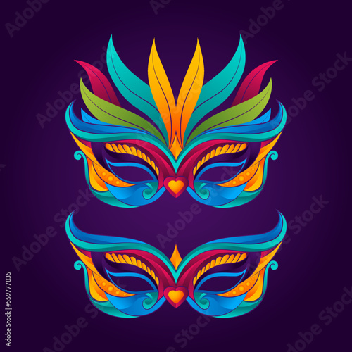 Naklejka premium Carnival Masks Decorated With bright colorful Feathers vector illustration
