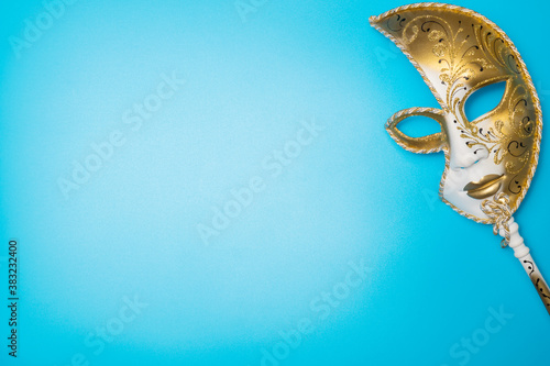 © Viktoria, Naklejka premium Carnival masquerade mask on blue background.