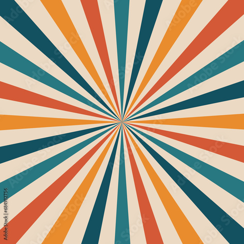 © Buch&Bee, Fototapeta premium Carnival or circus retro rays background. Vintage vector layout, sunbeam burst. Backdrop with red, blue and yellow muted radiating stripes creating hypnotic effect, evoking a sense of nostalgia