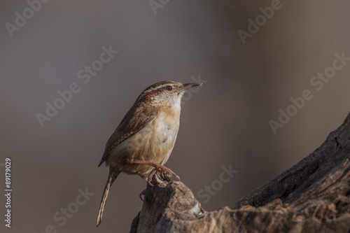 Fototapeta premium CAROLINA WREN PERCHED ON OLD STUMP