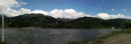© ola_pisarenko, Fototapeta premium Carpathian mountains and mountain river on a summer day landscape panorama