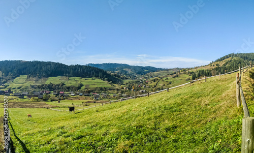 Fototapeta premium Carpathian mountains in sunny day in the autumn season