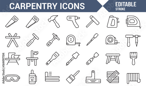 Fototapeta premium Carpenter Equipment Icons: Hammer, Saw, Drill, and More in Minimalist Style
