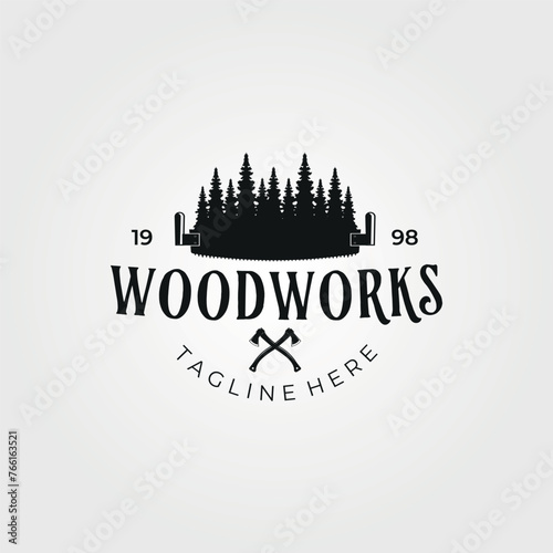 Obraz premium carpentry wood work logo vintage illustration design