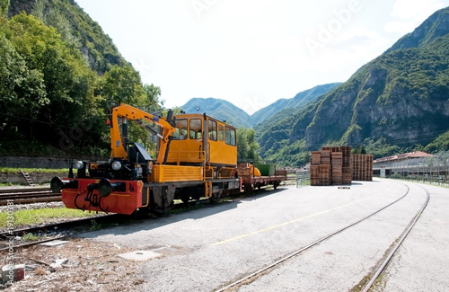 © Moreno Soppelsa, Obraz premium Carrello ferroviario con gru idraulica