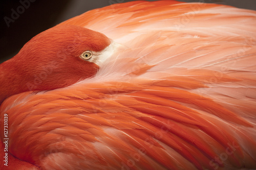 Obraz premium Carribean Flamingo with its head buried in its wings.