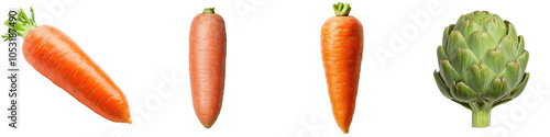 © ng-TDRD, Obraz premium Carrots and artichoke, white isolate background