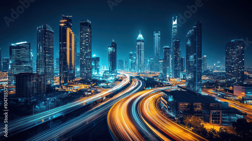 Fototapeta premium Cars on the highway with blue and yellow light trails