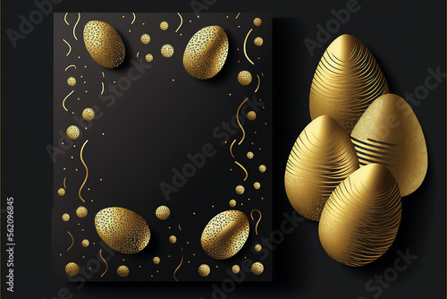 © Alexandre, Fototapeta premium cartão com ovos dourados de páscoa
