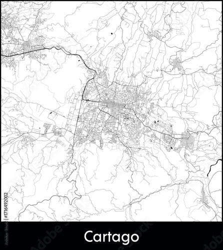 © Kuemin, Naklejka premium Cartago city map, Costa Rica - Topographic vector map poster