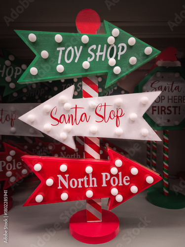 © Sergiogen, Obraz premium Cartello natalizio: Babbo Natale si ferma qui. Polo Nord