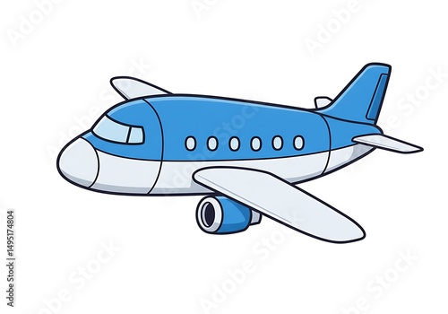 © Muaz, Obraz premium Cartoon airplane illustration with blue and white color scheme on a white background