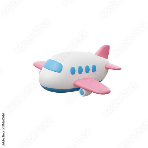 Fototapeta premium Cartoon airplane soaring blue pink and white