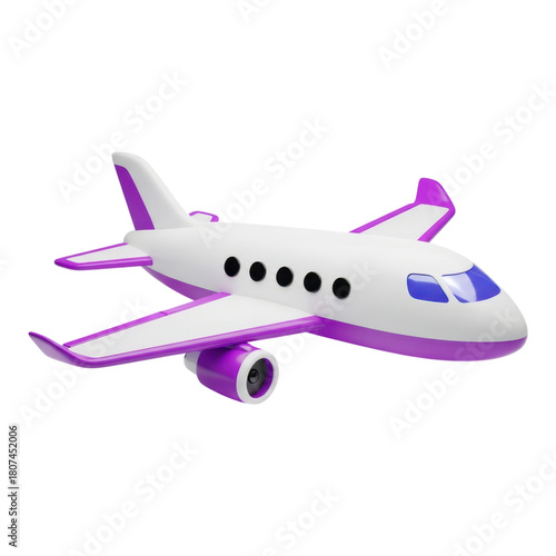 © MDTOUFICKAHAMAD, Fototapeta premium Cartoon airplane with purple accents isolated on transparent background