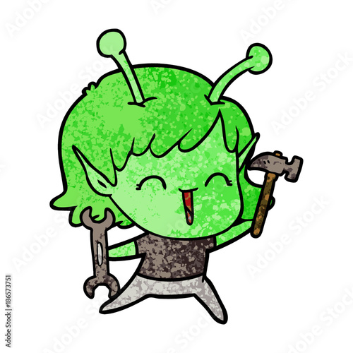 © lineartestpilot, Fototapeta premium cartoon alien mechanic girl